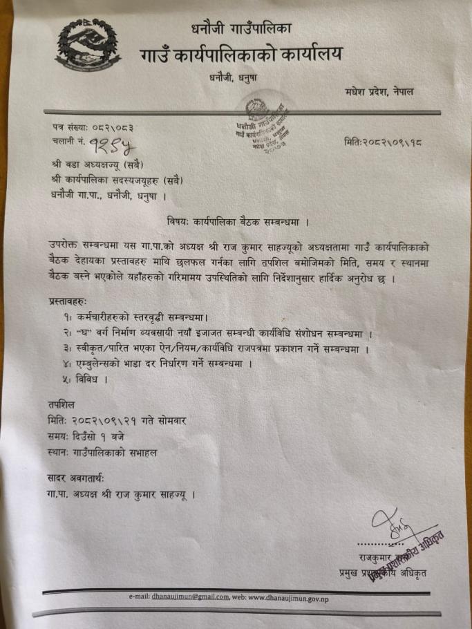 कार्यपालिका बैठक सम्बन्धि सूचना |