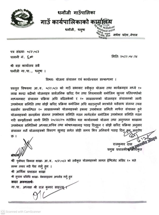 योजना संचालन एवं कार्यन्वयन सम्बन्धमा |